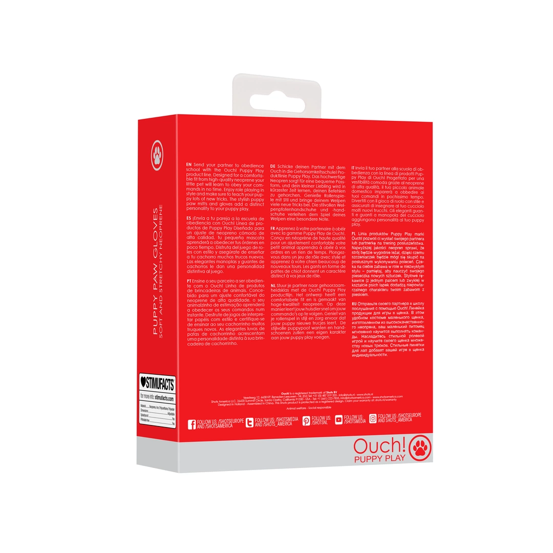 Neoprenowe rękawiczki marki Ouch! z kolekcji Puppy Play to nowoczesny gadżet zaprojektowany z myślą o ergonomii i wygodzie użytkowania. Wykonane z wysokiej jakości, trwałego neoprenu, zapewniają idealne dopasowanie do dłoni, jednocześnie gwarantując pełen komfort podczas użytkowania w trakcie rozmaitych aktywności tematycznych.