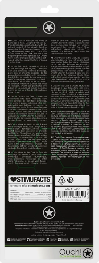 - Możliwość użytkowania solo lub w połączeniu z innymi produktami Ouch! z kolekcji Glow in the Dark.