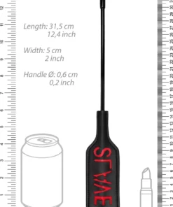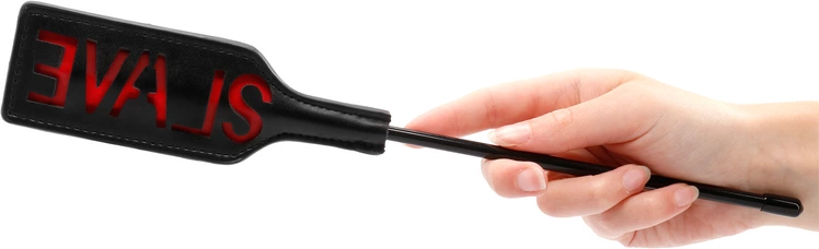 Ouch! by Shots Packa SLAVE to wysokiej jakości akcesorium, ktore doskonale sprawdzi się podczas odkrywania nowych możliwości w relacjach partnerskich. Model ten wyrożnia się prostokątną końcowką oraz unikalnym napisem SLAVE, ktory dzięki odwroceniu odbija się na powierzchni skory. Kompaktowa długość i wygodny uchwyt zapewniają pełną kontrolę oraz precyzję użytkowania.