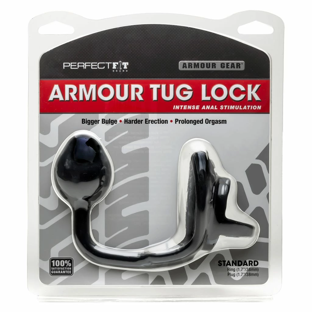 Perfect Fit Armour Tug Lock Black to innowacyjne akcesorium intymne łączące funkcjonalność pierścienia oraz kompaktowego pluga, wykonane z zaawansowanego materiału PF Blend (silikon + TPR). Ten model o średnicy 43 mm zapewnia anatomiczne dopasowanie i wygodę użytkowania dzięki elastycznej, ale solidnej konstrukcji. Zintegrowany system podtrzymujący pozwala na komfortowe oddzielenie oraz uniesienie, oferując wyjątkowe wsparcie podczas codziennego użytkowania.