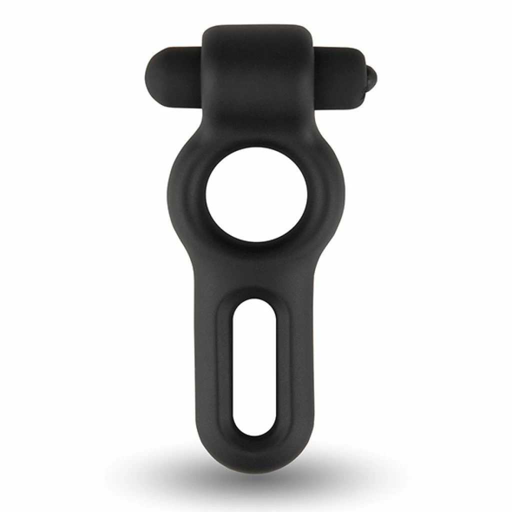 Model wykonany został z wysokogatunkowego, aksamitnie miękkiego silikonu oraz tworzywa ABS pokrytego przyjemną w dotyku powłoką PU. Dzięki dwom pierścieniom oraz rozciągliwej konstrukcji, można go wygodnie dopasować i nosić na rożne sposoby, zgodnie z potrzebami. Wbudowany system wibracji (jeden poziom intensywności) uruchamiany jest za pomocą wibrującego modułu typu bullet, ktory dołączony jest do zestawu.
