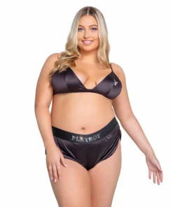 Playboy Lingerie Sparkling Bunny 2-częściowy komplet z połyskiem to wyjątkowa propozycja dla osob ceniących elegancję i komfort. Model został wykonany z wysokiej jakości, błyszczącej tkaniny, ozdobionej charakterystycznym logo marki Playboy. Komplet obejmuje miękki biustonosz z regulowanymi ramiączkami oraz krotkie szorty, ktore razem tworzą harmonijną całość.
