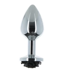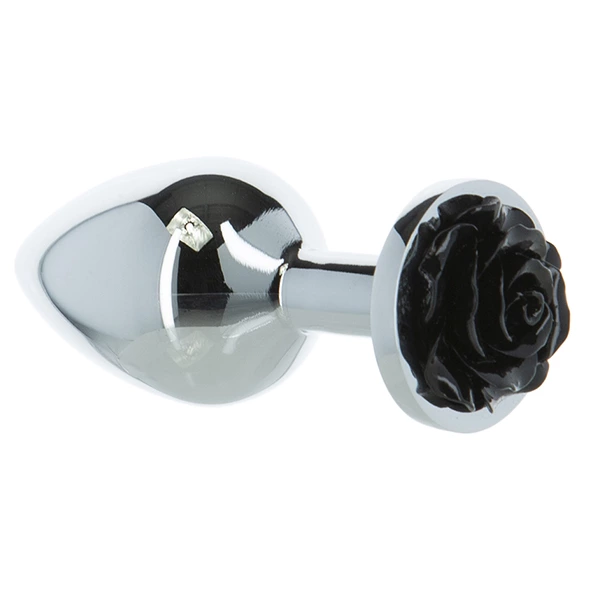 Zatyczka posiada stożkowy, anatomiczny kształt, co ułatwia aplikację i zapewnia komfort użytkowania. Jej gładka, bezszwowa powierzchnia została stworzona z bezpiecznego dla ciała metalu, ktory nie wchodzi w reakcje ze skorą i jest łatwy do utrzymania w czystości. Model wyposażony jest w dekoracyjny element w formie czarnej roży przy podstawie, ktora nadaje mu wyjątkowego, estetycznego charakteru oraz zwiększa wygodę i bezpieczeństwo użytkowania.