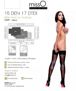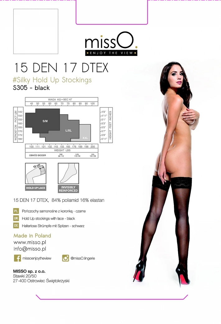 MissO S305 Pończochy samonośne czarne L/XL z koronką 15DEN
