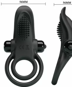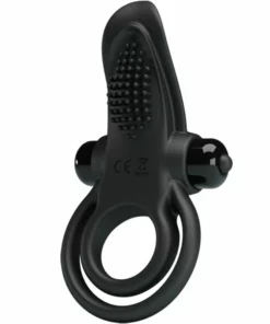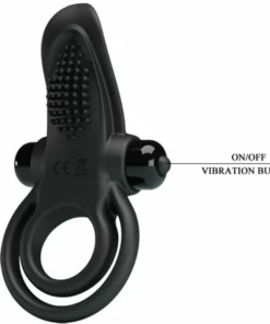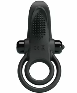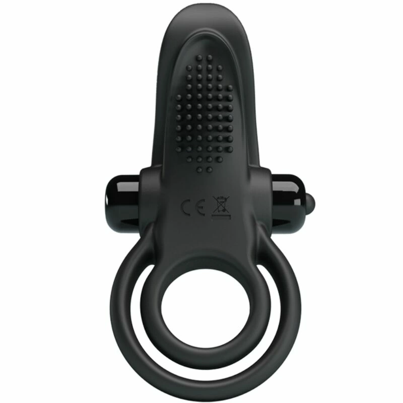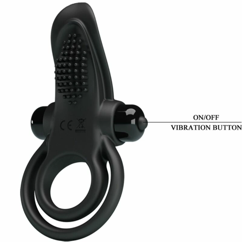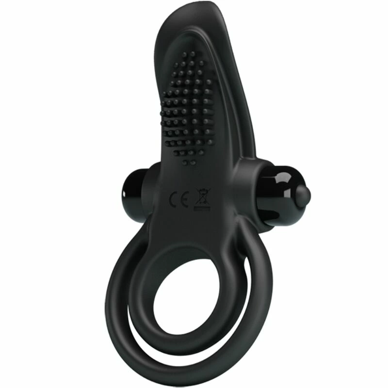Pretty Love BI-210203 Podwojny pierścień wibrujący z silikonowym stymulatorem, czarny