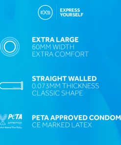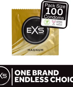 Model EXS Magnum to prezerwatywy przeznaczone dla osob poszukujących komfortu użytkowania dzięki zwiększonej szerokości. Wykonane z naturalnego, elastycznego lateksu, charakteryzują się gładką powierzchnią i są pokryte wysokiej jakości silikonowym środkiem nawilżającym, zapewniając wygodę w użytkowaniu. Model posiada anatomicznie wyprofilowane zakończenie typu smoczek, ktore dodatkowo zwiększa komfort podczas stosowania.