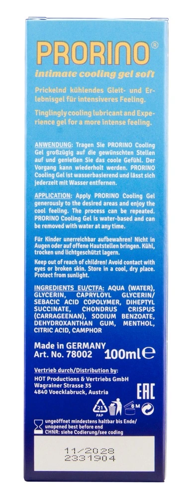 PRORINO Cooling Gel Soft 100ml to specjalistyczny żel intymny o działaniu chłodzącym, stworzony z myślą o zapewnieniu uczucia świeżości i komfortu podczas codziennej pielęgnacji. Produkt został opracowany na bazie wody, co gwarantuje łatwość aplikacji, szybkie zmywanie oraz brak pozostawiania śladow na skorze czy tkaninach. Transparentna formuła i jedwabista konsystencja sprawiają, że żel rozprowadza się rownomiernie i nie powoduje uczucia lepkości, zapewniając optymalne warunki do stosowania.