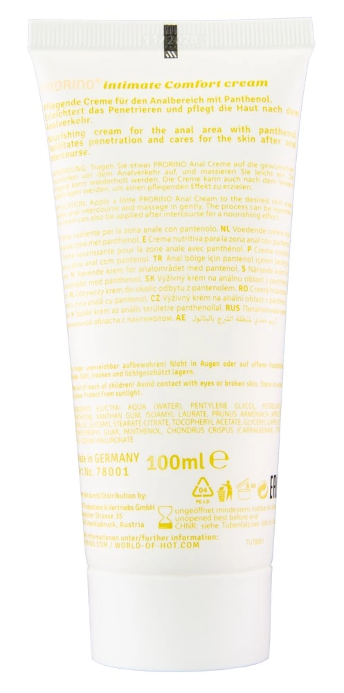 PRORINO Sensitive Anal Comfort to specjalistyczny krem pielęgnacyjny o formule opracowanej z myślą o delikatnych partiach ciała. Produkt oparty jest na składnikach łagodzących i nawilżających, takich jak pantenol, ktore wspierają utrzymanie naturalnej miękkości, elastyczności i gładkości skory. Dzięki aksamitnej konsystencji krem doskonale sprawdza się zarowno przed, jak i po pielęgnacji okolic wymagających szczegolnej troski.