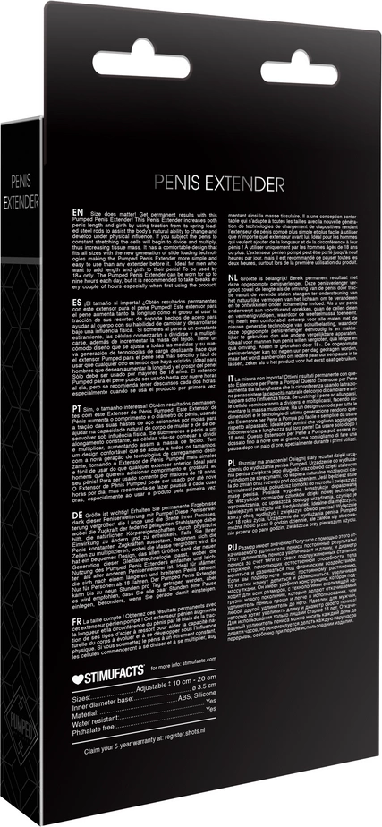 Pumped by Shots System Wydłużający z Regulacją to innowacyjne rozwiązanie do stopniowego zwiększania długości i obwodu, zaprojektowane z myślą o maksymalnym komforcie oraz łatwości użytkowania. Model ten wykorzystuje zaawansowany mechanizm oparty na sprężynowych stalowych prętach oraz nowoczesny system ładowania suwakowego, co umożliwia precyzyjną regulację napięcia oraz dostosowanie do indywidualnych potrzeb użytkownika.