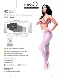 Wyjątkowy model stworzony z myślą o kobietach ceniących wygodę, elegancję oraz oryginalny design. Rajstopy MissO P102 w kolorze białym wyrożniają się subtelnym wycięciem w części anatomicznej, dzięki czemu doskonale sprawdzą się zarowno jako niebanalny dodatek do codziennych stylizacji, jak i na specjalne okazje wymagające nietuzinkowych rozwiązań.