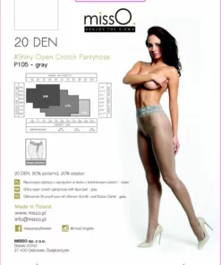 MissO P105 Rajstopy z wycięciem szare L/XL to wyjątkowy model, ktory łączy nowoczesny design z subtelną elegancją. Anatomiczne wycięcie w części intymnej zapewnia wygodę oraz nowatorski wygląd. Rajstopy zostały wykonane z wysokiej jakości przędzy o lekkim połysku, ktora pięknie podkreśla nogi. Gorna część ozdobiona jest delikatną koronkową aplikacją, co nadaje całości efektownego, kobiecego charakteru.