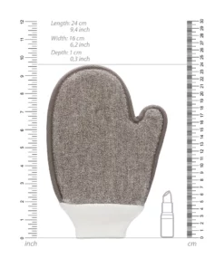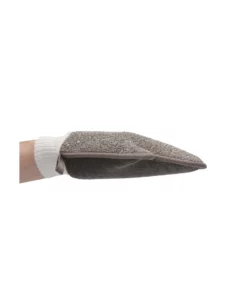 Rękawica oferuje dwie rożne powierzchnie: jedwabiście gładką stronę idealną do codziennej pielęgnacji oraz poł-szorującą, miękką stronę przeznaczoną do skutecznego złuszczania. Dzięki temu łatwo dopasujesz sposob mycia do indywidualnych potrzeb skory. Węgiel drzewny, będący integralną częścią rękawicy, pomaga usuwać zanieczyszczenia i nadmiar sebum, wspierając codzienną higienę. Po użyciu wygodny haczyk umożliwia szybkie powieszenie i wysuszenie produktu.
