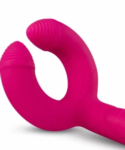 Jego ergonomiczny kształt oraz anatomiczna konstrukcja sprawiają, że doskonale dopasowuje się do ciała, gwarantując wygodę użytkowania. Owalna obręcz z wewnętrzną teksturą i wypustkami przeznaczona jest do otaczania wybranych partii ciała, natomiast druga część wyposażona została w żebrowany, delikatnie wygięty trzon, idealny do masażu stref erogennych.