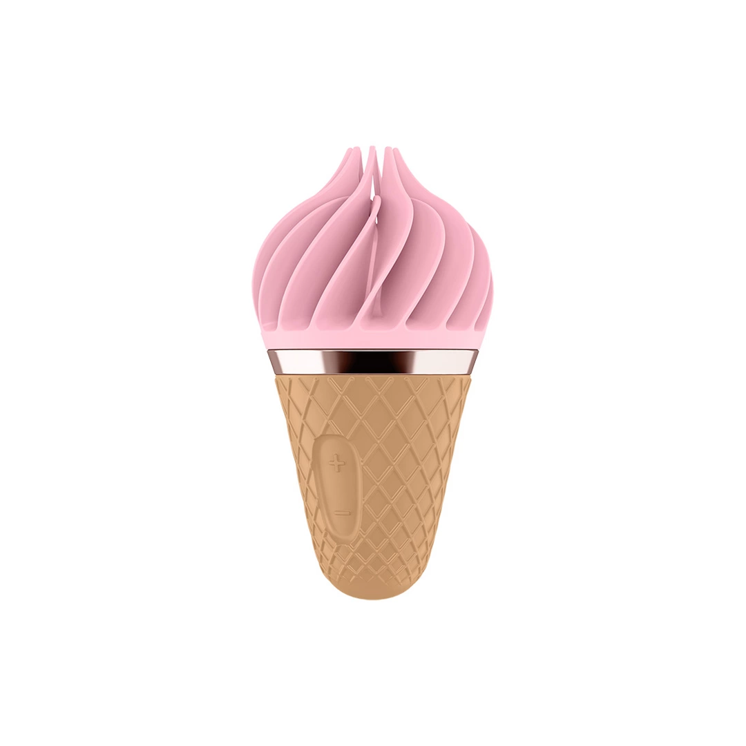 Model Sweet Treat wyrożnia się designerską formą przypominającą apetyczny rożek, a wysokiej jakości silikon klasy medycznej gwarantuje bezpieczeństwo oraz higienę użytkowania. Produkt oferuje kilka programow pracy, ktore można swobodnie zmieniać za pomocą intuicyjnego przycisku. Dzięki wbudowanemu akumulatorowi urządzenie jest ładowalne za pomocą kabla USB, co pozwala na wielokrotne użytkowanie bez konieczności wymiany baterii.