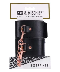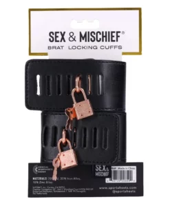 Sportsheets Sex & Mischief Brat to wysokiej jakości kajdanki wykonane z trwałej, wegańskiej skory w eleganckim, czarnym kolorze. Model ten został zaprojektowany z myślą o osobach poszukujących stylowych i solidnych akcesoriow do budowania poczucia bezpieczeństwa podczas wspolnych chwil. Subtelne akcenty w odcieniu rożowego złota nadają całości wyjątkowego charakteru i nowoczesnego wyglądu.