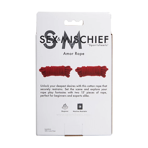 Sportsheets Sex & Mischief – Zestaw dwoch czerwonych lin bawełnianych 2×4,5m