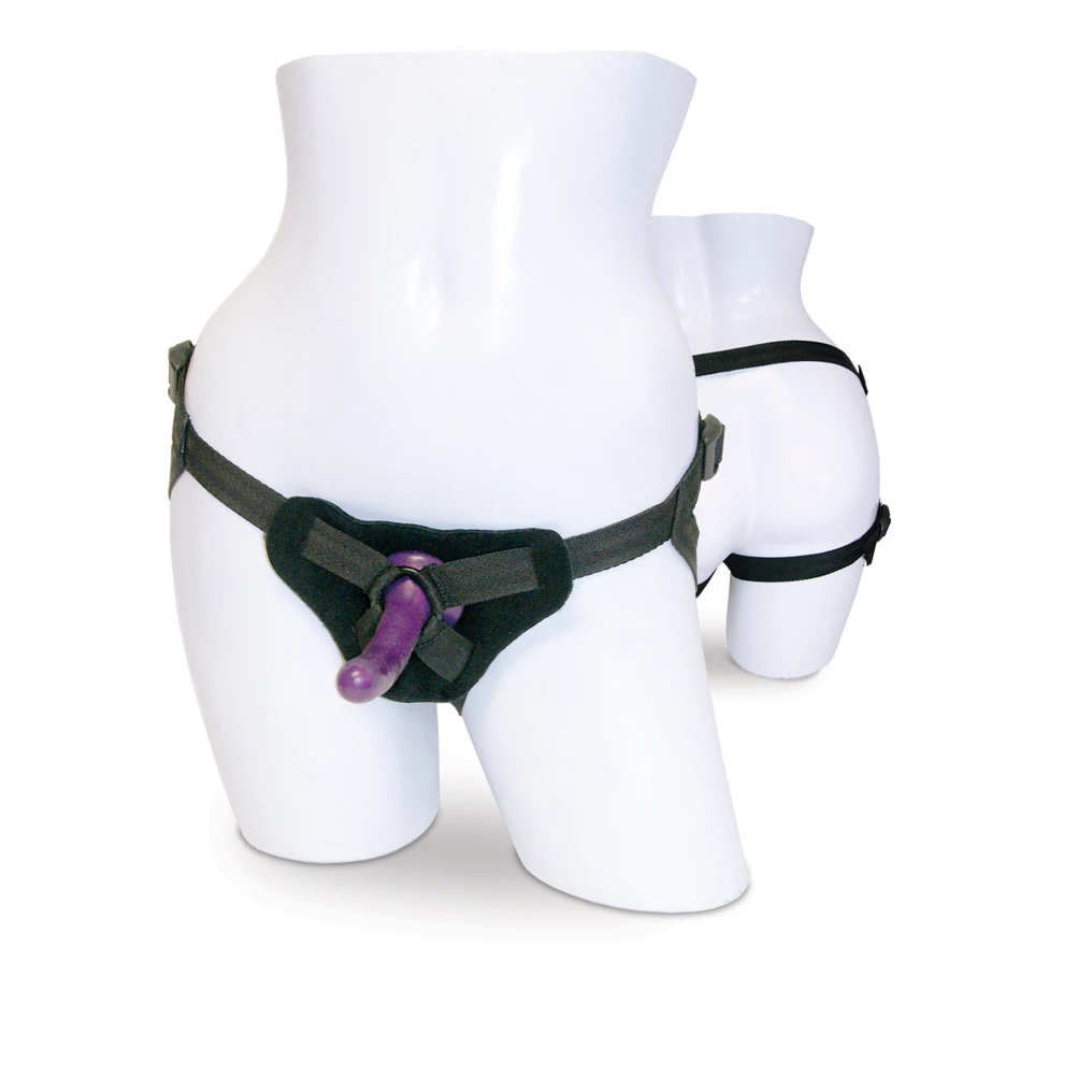 SPORTSHEETS SEX & MISCHIEF – UPRZĄŻ INTYMNA Z FIOLETOWYM SILIKONOWYM ELEMENTEM