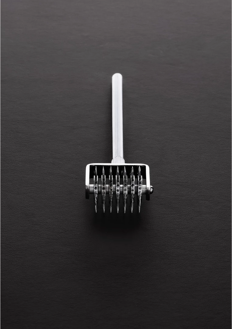 Steel Koło Wartenberga 7-głowicowe to profesjonalny przyrząd wykonany z wysokogatunkowej stali nierdzewnej, wyposażony w siedem precyzyjnych głowic z wyraźnie zaznaczonymi wypustkami. Dzięki zastosowaniu wielu głowic model zapewnia szeroki zakres kontaktu z powierzchnią skory, umożliwiając dokładne testowanie reakcji na bodźce dotykowe. Kompaktowy, ergonomiczny uchwyt ułatwia precyzyjne manewrowanie przyrządem, co pozwala na pełną kontrolę nad ruchem oraz siłą nacisku.