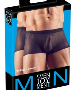 Odkryj zestaw dwoch par męskich bokserek marki Svenjoyment w kolorze czarnym, wykonanych z wysokiej jakości połprzezroczystego materiału. Te anatomicznie dopasowane bokserki zapewniają nie tylko atrakcyjny wygląd, ale także komfort użytkowania dzięki elastycznej tkaninie, ktora dopasowuje się do sylwetki. Zestaw idealny zarowno na co dzień, jak i na wyjątkowe okazje.