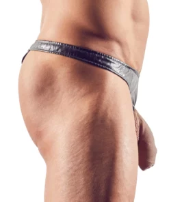 Nowoczesny design i oryginalność w jednym! Prezentujemy model męskich stringow marki Svenjoyment, wykonany z połyskującej, skoropodobnej tkaniny w klasycznym czarnym kolorze. Produkt został zaprojektowany z myślą o wyjątkowym wyglądzie oraz komforcie użytkowania. Anatomiczny kroj oraz elastyczny otwor z przodu podkreślają indywidualny charakter produktu, nadając mu niepowtarzalny styl. Stringi świetnie sprawdzą się zarowno na specjalne okazje, jak i jako oryginalny element garderoby na co dzień.