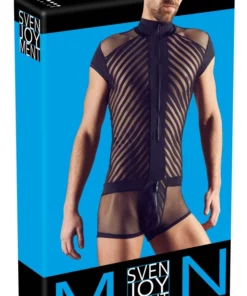 Odkryj nowoczesny model męskiego body marki Svenjoyment, wykonany z przewiewnej, elastycznej siateczki w dwoch wariantach. Body w rozmiarze L doskonale podkreśla sylwetkę, zapewniając jednocześnie wygodę i atrakcyjny, modny wygląd. Czarny materiał, wzmocniony efektownymi paskami i praktycznym zamkiem błyskawicznym z przodu, tworzy wyrazisty i dynamiczny design. Krotkie rękawy oraz starannie dopasowana podszewka w okolicy torebki gwarantują komfort noszenia i funkcjonalność na co dzień oraz podczas wyjątkowych okazji.