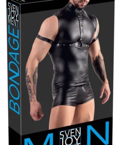 Marka Svenjoyment prezentuje unikatowy top męski w rozmiarze XL, utrzymany w ponadczasowej czerni o matowym wykończeniu. Ten model wyrożnia się efektownymi detalami w postaci trwałych ćwiekow oraz stylowych szelek z metalowymi pierścieniami po bokach, do ktorych można przypiąć załączone pasy na ramiona. Dodatkowym atutem są paski na kostkach o matowej powierzchni z regulowanymi zapięciami na rzepy, zapewniające wygodne dopasowanie do sylwetki.