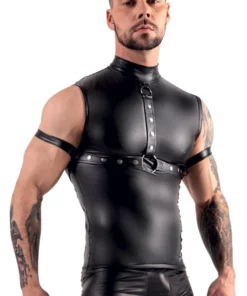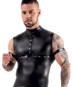 - Model: Top męski z ćwiekami, szelkami i pasami