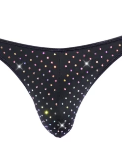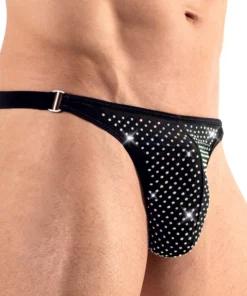 Model Svenjoyment to unikalny wybor dla mężczyzn ceniących nowoczesny design oraz komfort noszenia. Czarne stringi zostały ozdobione efektowną aplikacją z opalizujących kryształkow, ktore subtelnie mienią się przy każdym ruchu, podkreślając wyjątkowy charakter produktu. Przod stringow wykonano z wysokiej jakości, miękkiego materiału, ktory zapewnia elastyczność i doskonałe dopasowanie do sylwetki. To idealna propozycja dla osob poszukujących stylowych rozwiązań w codziennej garderobie.