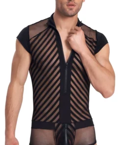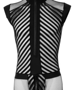 Nowoczesny styl i komfort – body męskie Svenjoyment z siateczki, czarne paski, suwak, rozmiar S