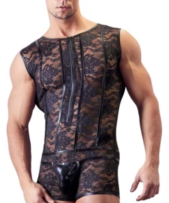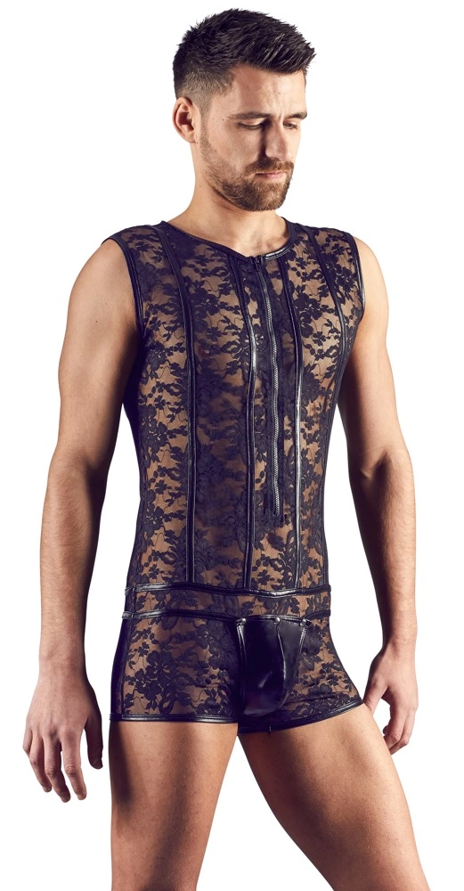 Svenjoyment Body Męskie Koronkowe Czarne L z Zamkiem Przod