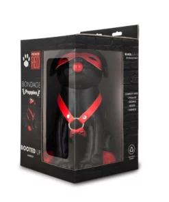 - Wyjątkowy design – maska, knebel, uprząż oraz czerwone buty