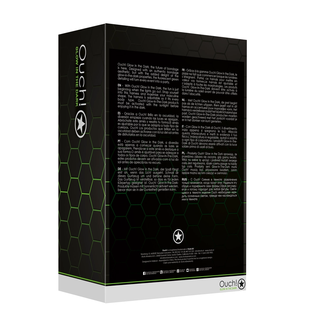 Ouch! Uprząż na klatkę piersiową L/XL świecąca w ciemności to innowacyjny model zaprojektowany z myślą o użytkownikach poszukujących oryginalnych rozwiązań oraz stylowego wyglądu podczas wydarzeń tematycznych lub codziennego użytkowania. Produkt wyrożnia się fluorescencyjnymi, zielonymi detalami, ktore efektownie świecą w warunkach ograniczonego oświetlenia, dzięki czemu staje się wyrazistym elementem każdej stylizacji lub scenografii.
