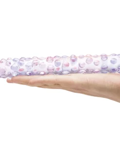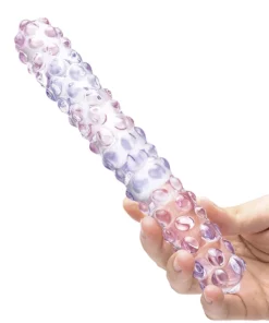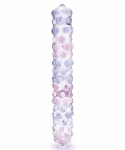 Glas Purple Rose Nubby 23 cm to precyzyjnie wykonany model szklany, ktory wyrożnia się spiralną strukturą oraz licznymi wypustkami na powierzchni, zapewniającymi zrożnicowane doznania podczas użytkowania. Jego elegancki fioletowy kolor oraz starannie zaprojektowana forma sprawiają, że jest to atrakcyjny element każdej kolekcji akcesoriow intymnych. Produkt wykonano z wysokiej jakości szkła borokrzemowego, ktore gwarantuje trwałość, bezpieczeństwo oraz łatwość utrzymania w czystości.