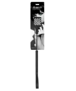S&M Studded Square Crop to dwustronny model szpicruty zaprojektowany z myślą o rożnorodnym zastosowaniu podczas zaawansowanej gry partnerskiej. Jedna strona charakteryzuje się gładką powierzchnią, umożliwiając precyzyjną i kontrolowaną stymulację. Druga powierzchnia została wyposażona w stalowe, okrągłe aplikacje, ktore zwiększają funkcjonalność produktu, oferując bardziej wyraziste bodźce.