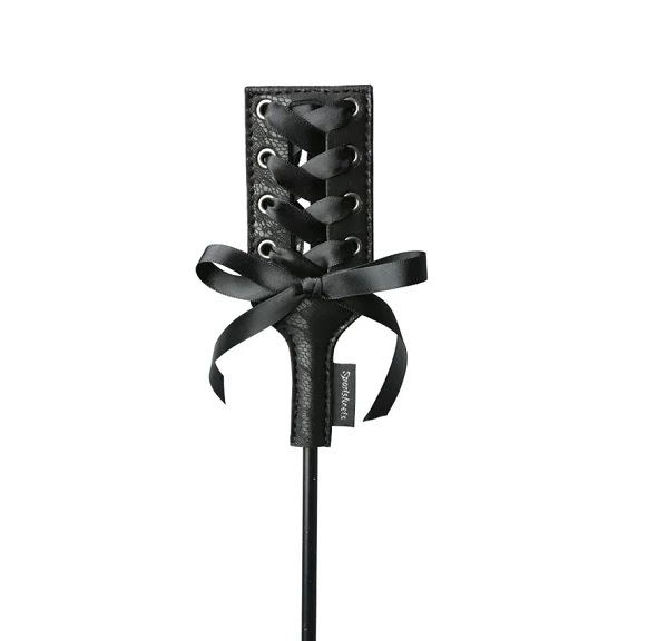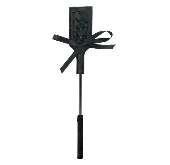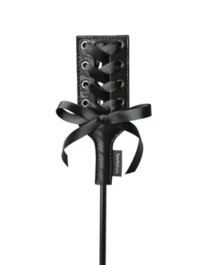 Końcowka urządzenia została ozdobiona piękną koronką, ktora została efektownie zasznurowana na wzor gorsetu i uzupełniona dekoracyjną kokardką. Konstrukcja ta nadaje całości wyjątkowo elegancki charakter. Trzon produktu jest smukły, a jednocześnie bardzo wytrzymały, co zapewnia komfort użytkowania i długą żywotność.