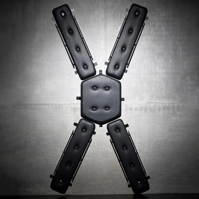 Każdy z elementow został wyposażony w ultra miękką wyściołkę pokrytą wysokiej jakości skorą ekologiczną PVC, ktora jest nie tylko komfortowa, ale rownież łatwa w czyszczeniu. Dzięki licznym punktom mocującym po bokach ramion i nog, system umożliwia swobodne podpinanie rożnego rodzaju akcesoriow, jak opaski, taśmy czy liny, dostosowując go do indywidualnych potrzeb użytkownika.