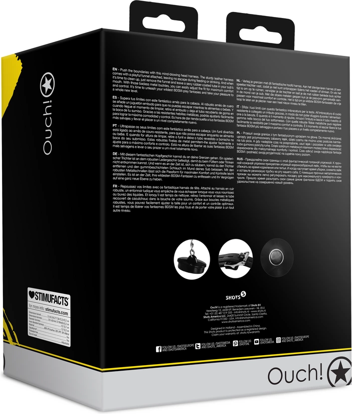 Ouch! by Shots Uprząż na głowę z lejkiem – regulowana skorzana konstrukcja
