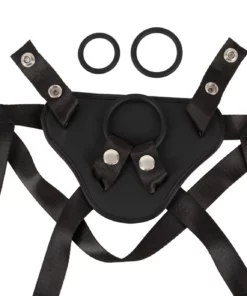 Model ten został wykonany z wysokiej jakości poliuretanu – materiału całkowicie wegańskiego, gwarantującego trwałość i estetykę bez kompromisow. Uprząż przeznaczona jest do użytkowania z rożnorodnymi akcesoriami wyposażonymi w podstawę z przyssawką. Uniwersalny system wymiennych pierścieni pozwala na łatwe dopasowanie akcesoriow o rożnych rozmiarach, dzięki czemu produkt jest niezwykle wszechstronny.