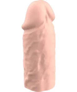 Model wykonany jest z wysokiej jakości, 100% silikonu klasy medycznej, ktory zapewnia wyjątkową miękkość i elastyczność. Powierzchnia przypomina w dotyku drugą skorę, a materiał szybko dostosowuje się do temperatury ciała. Nakładka może zostać indywidualnie dopasowana do użytkownika – istnieje możliwość docięcia jej długości, aby uzyskać idealne dopasowanie.