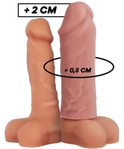 Model wykonany jest z wysokiej jakości, 100% silikonu klasy medycznej, ktory zapewnia wyjątkową miękkość i elastyczność. Powierzchnia przypomina w dotyku drugą skorę, a materiał szybko dostosowuje się do temperatury ciała. Nakładka może zostać indywidualnie dopasowana do użytkownika – istnieje możliwość docięcia jej długości, aby uzyskać idealne dopasowanie.