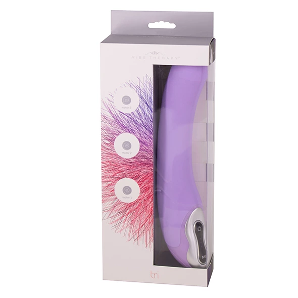 Vibe Therapy Tri Purple to innowacyjne urządzenie intymne, ktore łączy zaawansowaną technologię z wysokiej klasy materiałami, zapewniając komfort użytkowania i łatwość obsługi. Wyposażone w aż trzy niezależne silniki, urządzenie umożliwia precyzyjne dopasowanie pracy do indywidualnych potrzeb, dzięki aż 7 zrożnicowanym programom pracy. Ergonomiczny, anatomiczny kształt został zaprojektowany z myślą o skutecznym dopasowaniu do kształtu ciała oraz ułatwieniu obsługi.