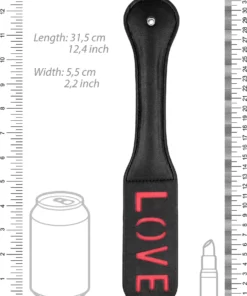Odkryj model Paddle LOVE od renomowanej marki Ouch! – wysokiej klasy akcesorium wykonane z solidnej, a zarazem elastycznej skory syntetycznej. Ten elegancki gadżet wyrożnia się unikalnym wzorem z napisem „LOVE”, ktory został precyzyjnie wycięty, tworząc charakterystyczny efekt na powierzchni skory. Produkt został zaprojektowany z myślą o trwałości oraz wygodzie użytkowania dzięki ergonomicznemu uchwytowi i optymalnej długości.
