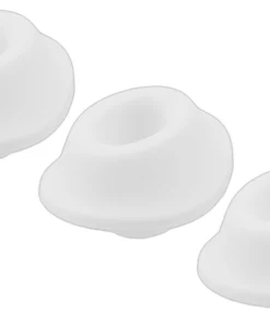 Zestaw w rozmiarze S jest dedykowany osobom preferującym mniejsze końcowki – średnica wewnętrzna wynosi 15 mm, wysokość 10 mm, a objętość to 1,6 cm³. Klasyczny, biały kolor oraz neutralny design sprawiają, że nakładki prezentują się estetycznie i dyskretnie.
