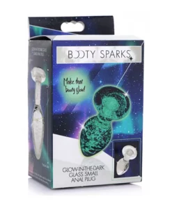 Booty Sparks szklany korek świecący w ciemności marki XR Brands to nowoczesny dodatek intymny, ktory wnosi wyjątkowy efekt wizualny do wieczornych chwil relaksu. Model wykonano z wysokiej jakości szkła borokrzemowego, co gwarantuje trwałość, gładką powierzchnię oraz bezpieczeństwo użytkowania. Produkt posiada spiralny wzor w kolorze zielonym, ktory po naświetleniu emituje subtelne światło, oferując niebanalną dekorację w ciemności.