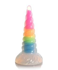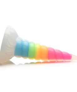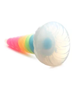 XR Brands Glow Dildo Silikonowy Tęczowy Świecący Spiralny 19 cm to wyjątkowy model przeznaczony dla osob poszukujących niebanalnych rozwiązań. Wykonany z wysokiej jakości, bezpiecznego dla ciała silikonu, charakteryzuje się spiralnym, stożkowym kształtem oraz efektownym tęczowym rdzeniem, ktory świeci w ciemności, zapewniając unikalny efekt wizualny podczas użytkowania.