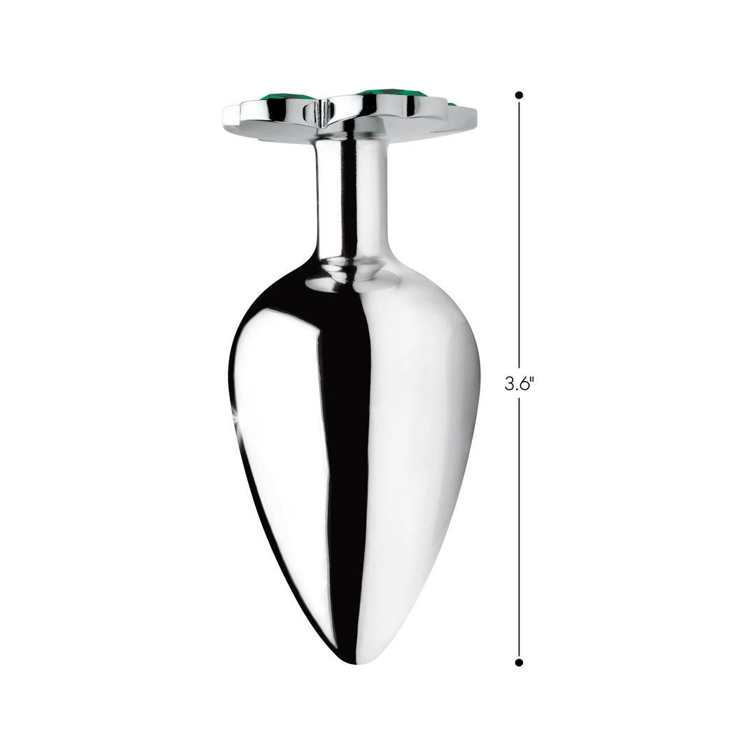 XR Brands Korek analny Clover Large to wyjątkowy model, ktory łączy nowoczesny design z wysoką funkcjonalnością. Wyrożnia się ozdobną podstawą w kształcie czterolistnej koniczyny, ktora dodaje mu estetycznego charakteru i nadaje elegancki wygląd. Korek wykonany został z wysokiej jakości aluminium, wolnego od niklu, co zapewnia trwałość oraz komfort użytkowania. Metaliczna powierzchnia jest idealna do eksperymentowania z temperaturą – można ją schładzać lub podgrzewać, aby dopasować produkt do indywidualnych preferencji.
