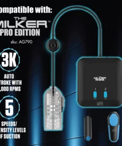 - System intymny XR Brands Milker może być używany samodzielnie lub jako wymienna część do urządzenia Milker Pro Edition (AG790), zapewniając kompatybilność z funkcją automatycznego ruchu, wibracjami i ssaniem.