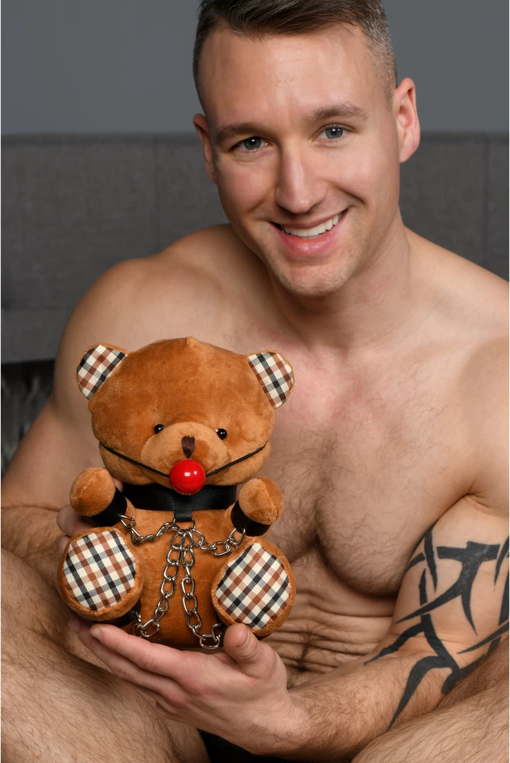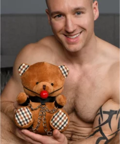 Miś posiada ozdobne wiązania z miękkiej, jedwabistej liny oraz zdejmowaną opaskę na oczy ze skory PU, co czyni go doskonałym prezentem tematycznym. Jego kompaktowy rozmiar sprawia, że świetnie sprawdzi się jako ozdoba na połce, kreatywny element wystroju wnętrza lub wyjątkowy gadżet kolekcjonerski. Miś jest wyjątkowo miły w dotyku, co sprawia, że rownie dobrze nadaje się do przytulania.