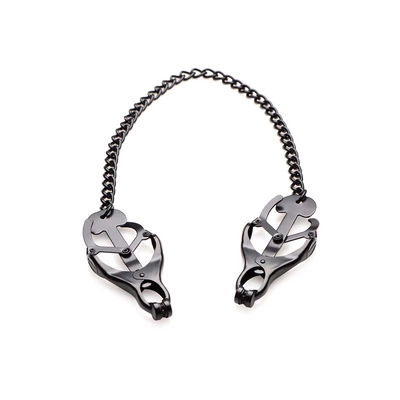XR Brands Monarch Metalowe Zaciski z Łańcuchem to precyzyjnie wykonany akcesorium dla osob poszukujących wyjątkowych rozwiązań w zakresie personalizowanych doświadczeń. Model ten wyrożnia się nowoczesnym designem, a zastosowanie mechanizmu typu koniczyna zapewnia solidny i stabilny uchwyt. Dzięki możliwości regulacji siły nacisku, produkt doskonale sprawdzi się zarowno podczas indywidualnych ćwiczeń, jak i w interakcji partnerskiej.