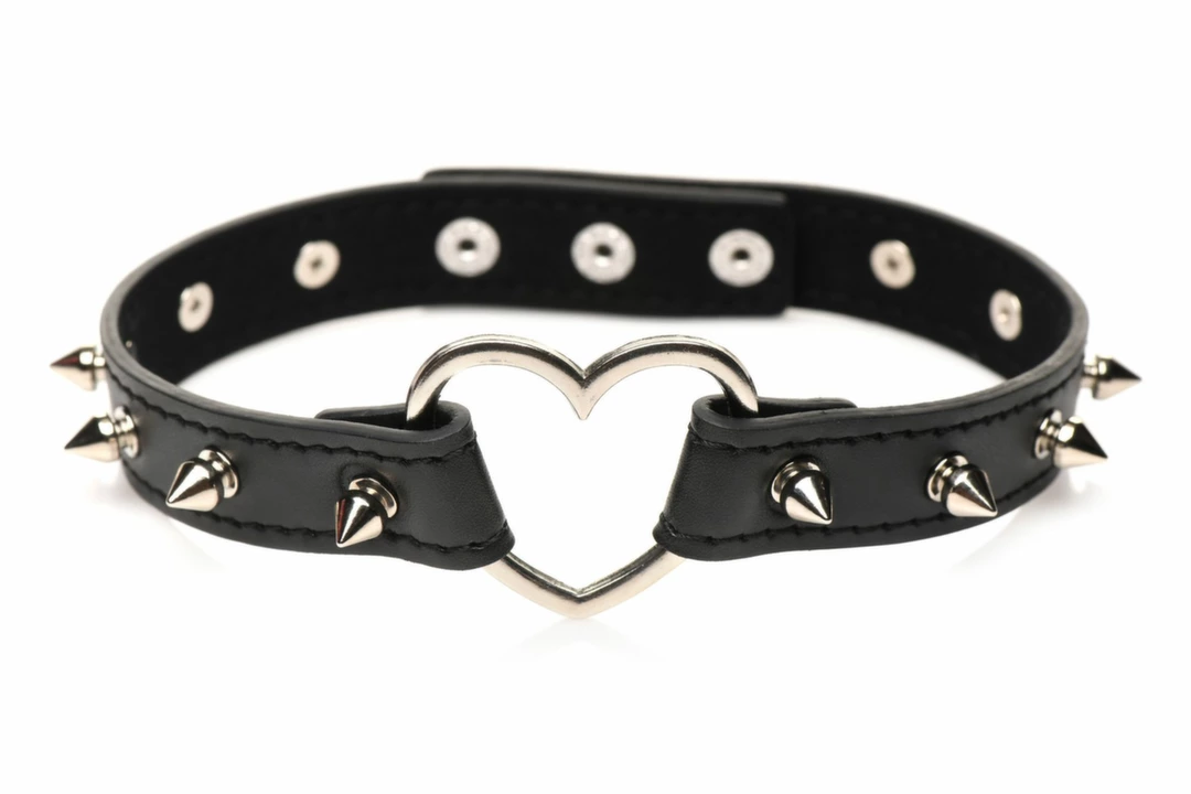 XR Brands Spiked Heart Choker Black – Pasek z Ćwiekami Vegan 42 cm